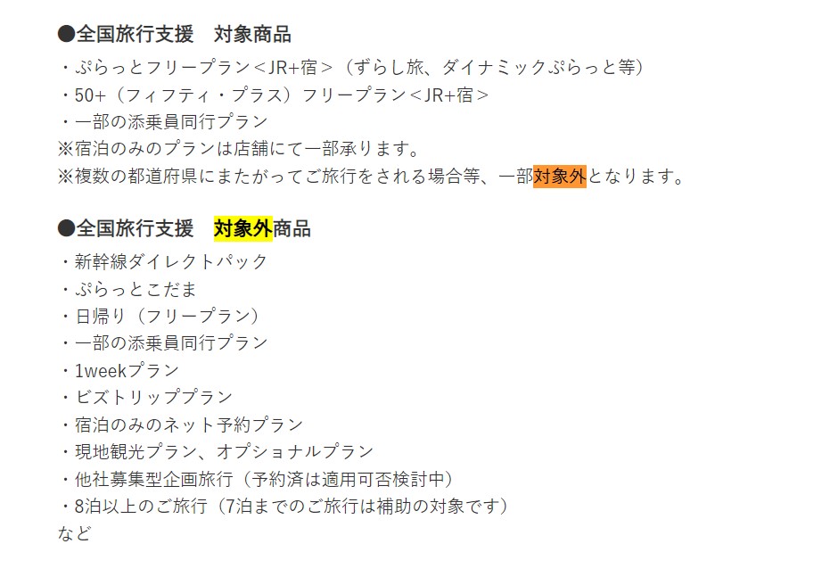 10月12日追記 ずらし旅は対象外か?