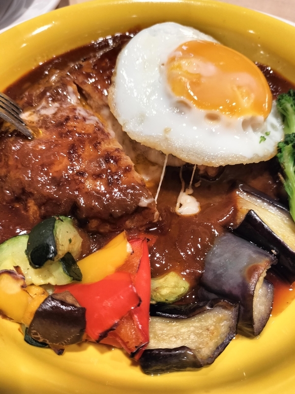 ハンバーグ自体もいつものチーズインハンバーグ以上にしっかりとしていました。ソースとよーく絡めると更に美味しいですよ。