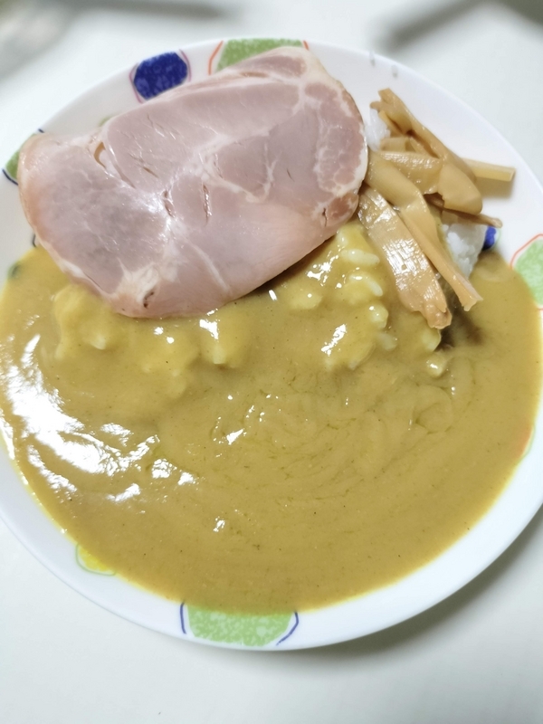 味やとろみからラーメンではなくカレーだと認識できますが辛さ自体は一般的な中辛程度でした。飲食店でカレーラーメンを提供している店は多いですが、ここまで豚骨の強いものは初めて!